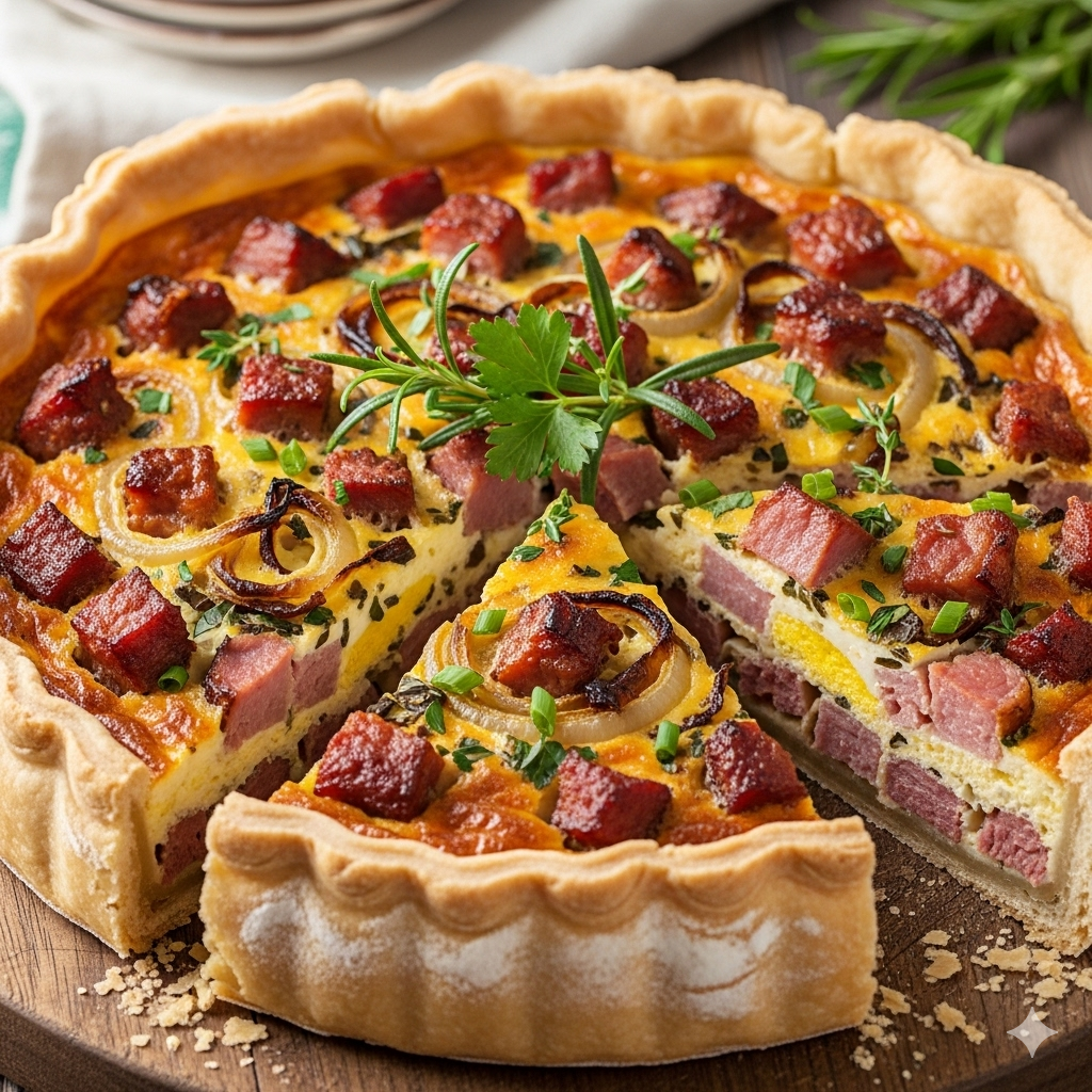 A Meat Quiche (often marketed as “Meat Lover’s Quiche” or a customized Quiche Lorraine) is a deeply savory, satisfying tart. It elevates the classic brunch dish by loading the creamy egg custard with a generous blend of prepared meats and rich cheeses.